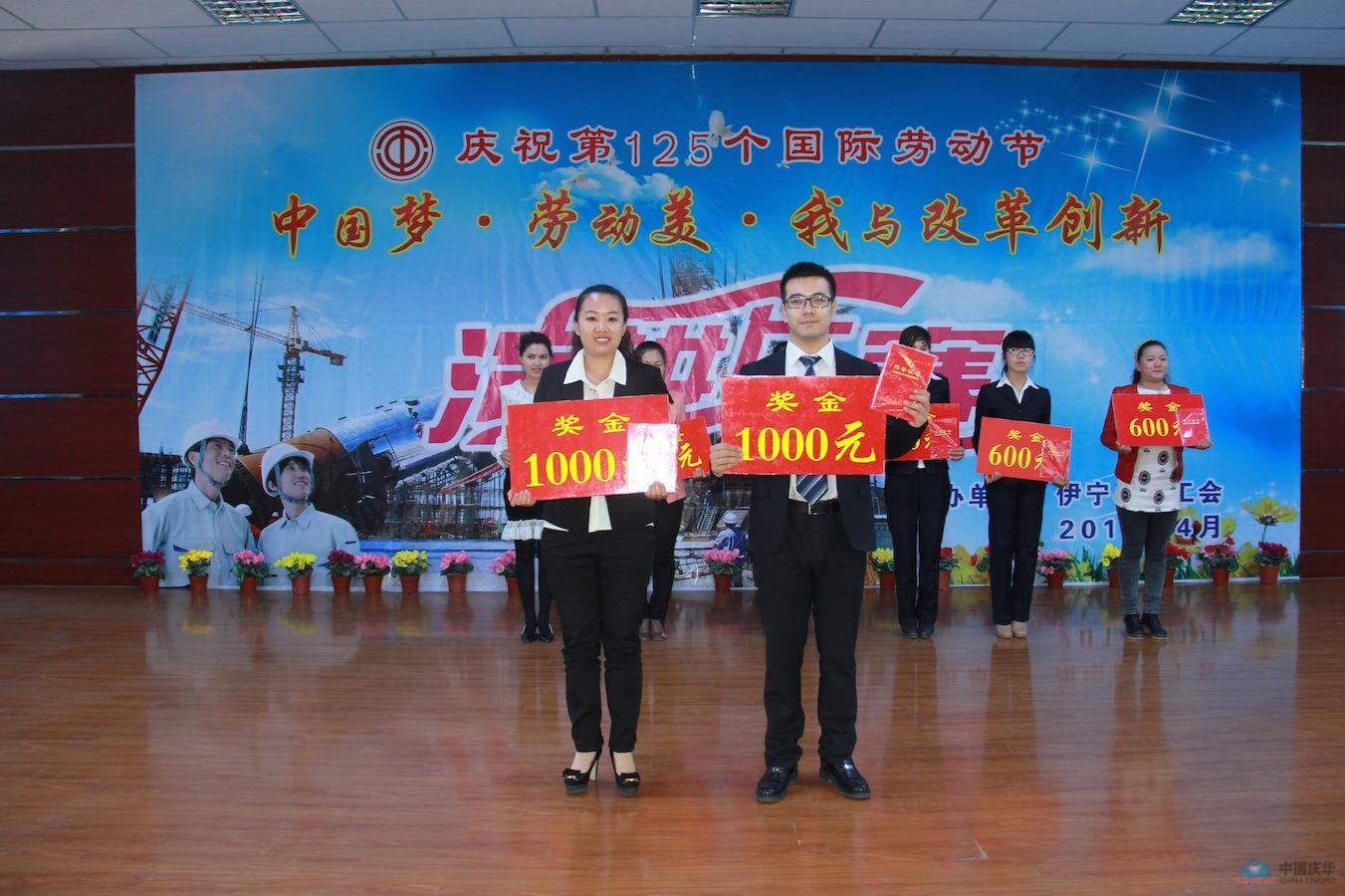 中國慶華新疆消息(馬進)為迎接第125個“五一”國際勞動節,踐行黨的群眾路線,切實開展職工主題教育宣傳活動,4月17日,新疆伊寧縣總工會主辦“中國夢•勞動美•我與改革創新”主題演講比賽,比賽分為民族組與漢族組,各組分別設立一、二、三等獎及優秀獎。最終,新疆集團的阿拉法特與王瑤,包攬民、漢兩組一等獎,新疆集團工會聯合會榮獲“優秀組織獎”。