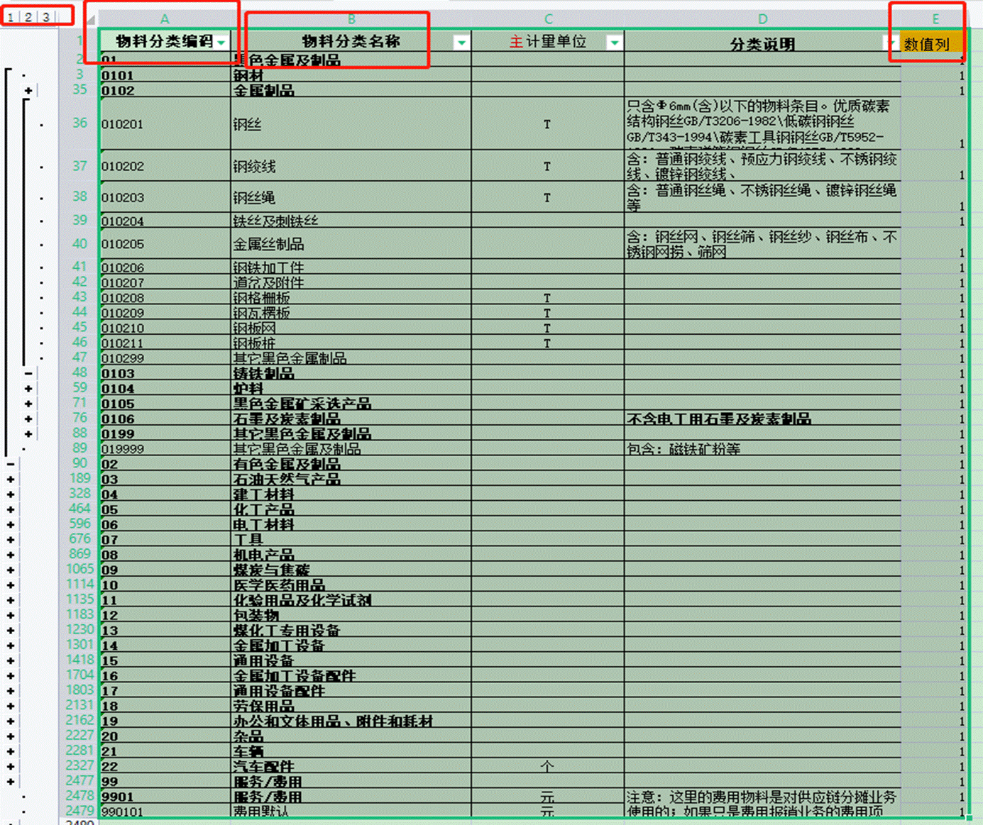 例1:經過多次修訂,中國慶華集團統一規定了物料編碼規則和編碼名稱如下圖: